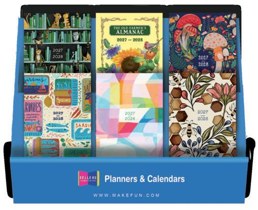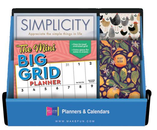 6-or 4-pocket countertop display for Two-Year-Plus Pocket Planner and Mini. Mixed formats available with two titles of both Mini and Pocket Planners. All displays offered FREE upon request, when ordered full.