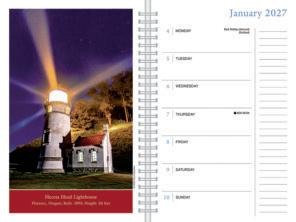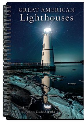 This weekly calendar features US lighthouses against dramatic backdrops of the night sky. In addition to the beautiful images of East and West Coast lighthouses, each week includes information on the featured lighthouse.