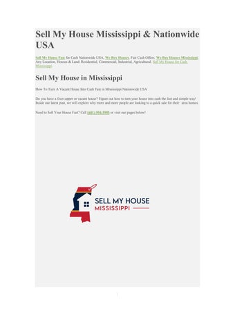 Sell My House Fast for Cash Nationwide USA. We Buy Houses. Fair Cash Offers. We Buy Houses Mississippi. Any Location, Houses & Land: Residential, Commercial, Industrial, Agricultural. Sell My House for Cash Mississippi.
