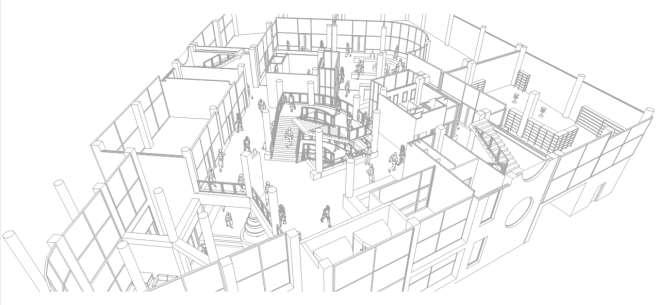 Le programme du projet apporte un complément aux fonctionnalité de la construction principale. Le lien qui entretien avec le bâtiment principale est un lien d’usage. Les espaces qu’il abrite sont : espace de détente/snack, espace d’exposition, atelier maquette, materiauthèque /bibliothèque et espace de reprographie-impressions