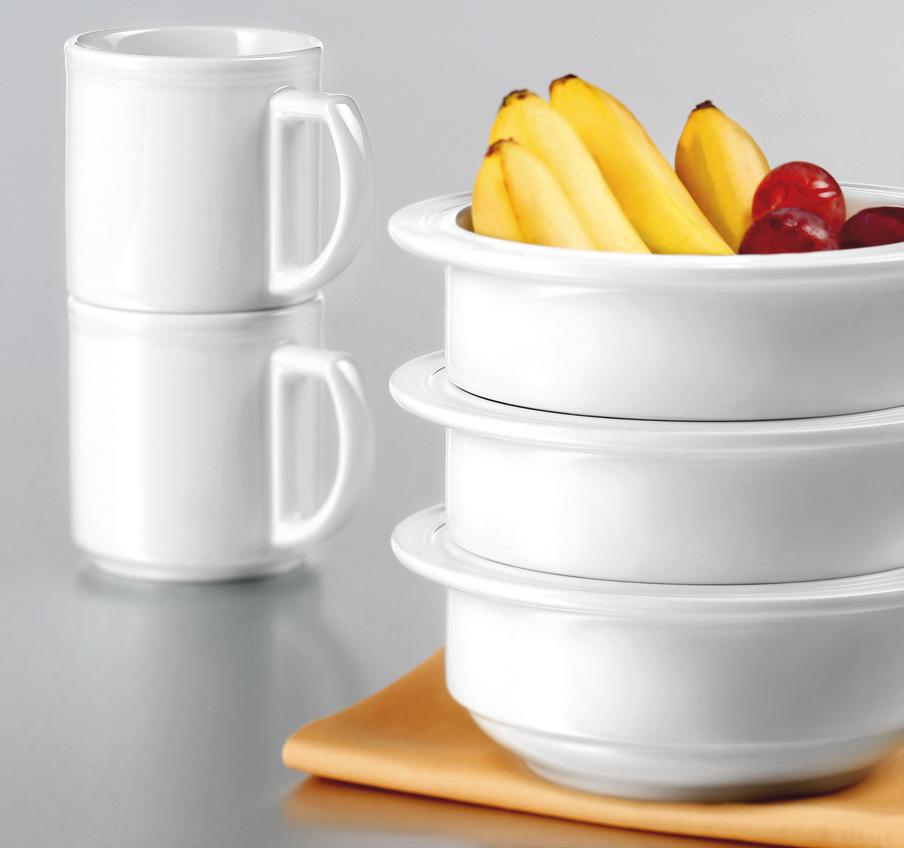 VITALIS is stackable, with break-proof edges, heatstoring, shock and scratch-resistant and hygienic as well as dishwasher-proof and suitable for microwaves.