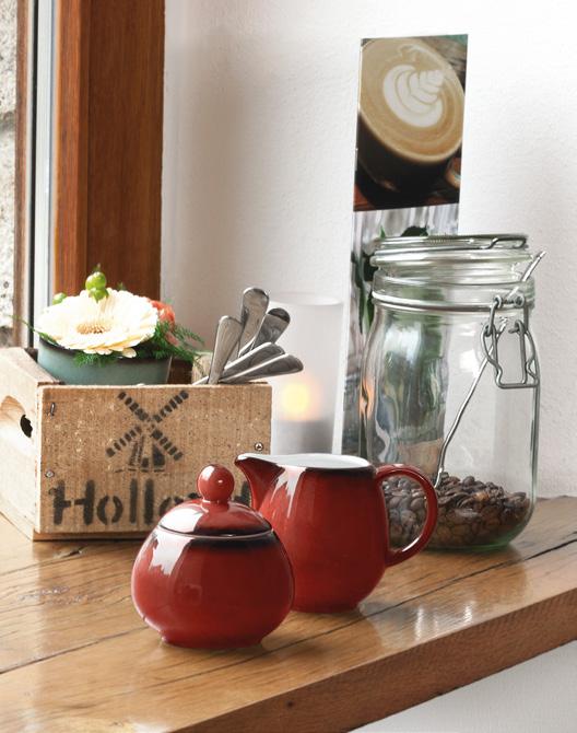 Die fünf Dekore Grau, Caramel, Türkis, Royalblau und Ziegelrot helfen das kulinarische »Thema« stimmungsvoll zu inszenieren.