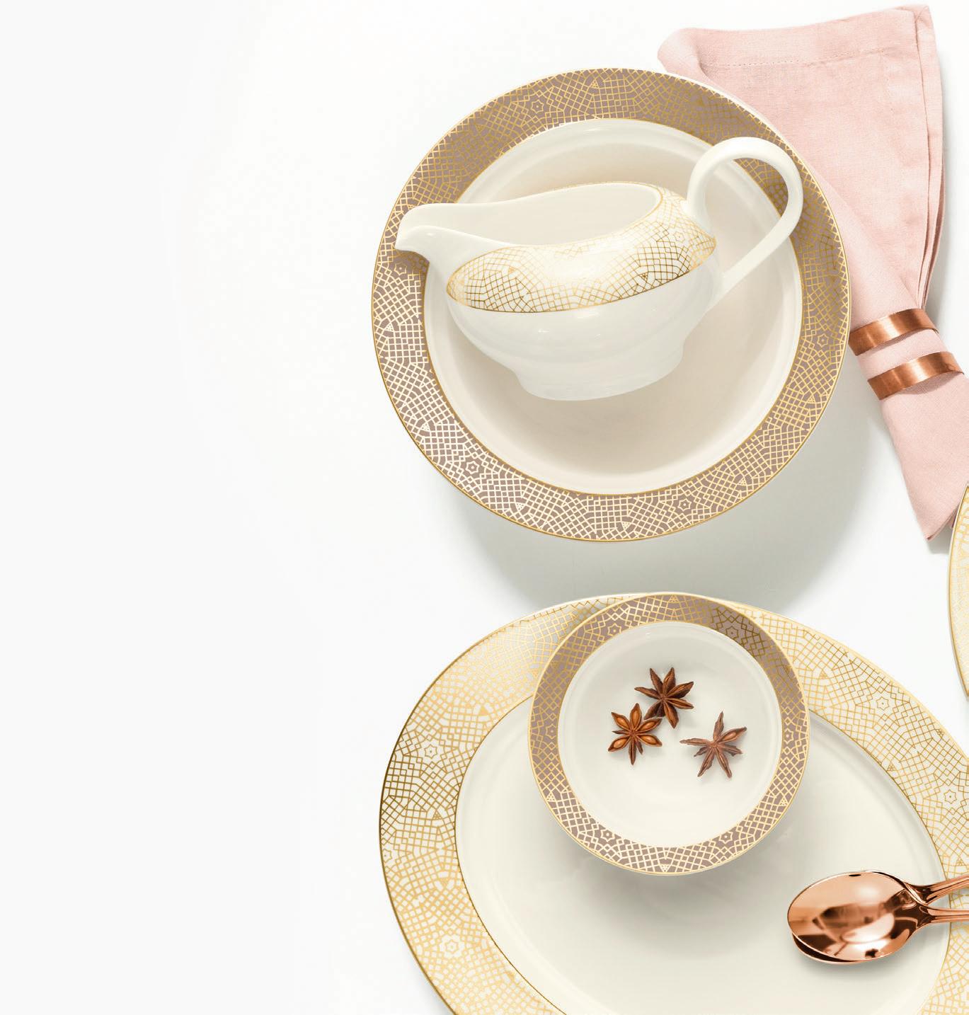 With the new SAPHIR shape, KÖNIGLICH PR. TETTAU shows once again the unlimited possibilities of form offered by porcelain. Maybe it should be called »Harmony« or »Elegance« – because the SAPHIR shape holds these characteristics so dear. Therefore, in its entire guise it is a »precision gem« among the porcelain series. A real SAPPHIRE.