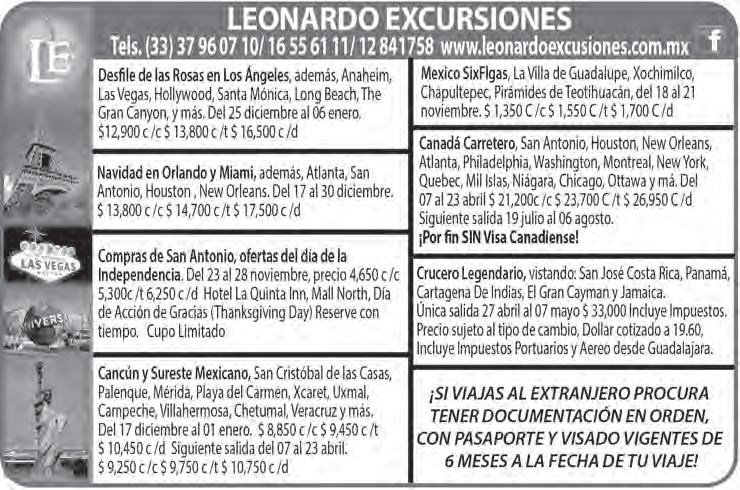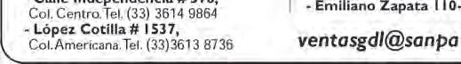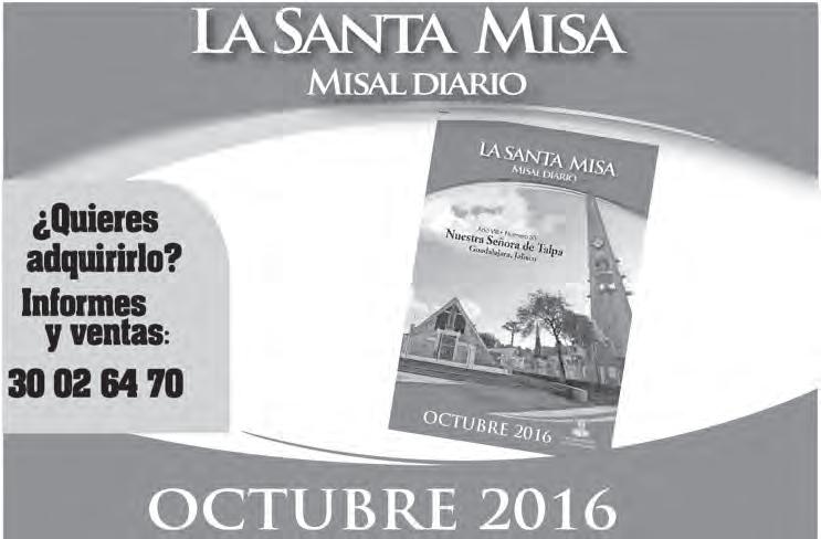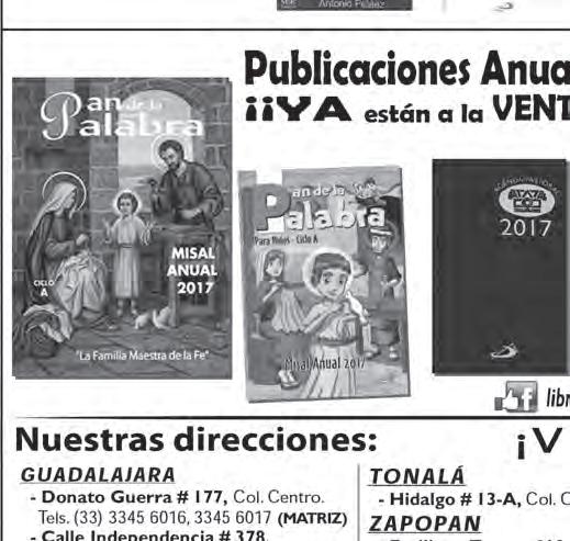 Teléfono: 3002-6470. Suscripciones: Ext. 1954 | Publicidad: Ext. 1925 | Redacción: Ext. 1922 Horario de oficina: 8:30 a.m. a 5:30 p.m., correo electrónico: semanario@cccomunicaciones.com.mx Página Internet: http://www.semanario.com.mx • Distribución: Mensajería Tercer Milenio, Jarauta N. 510-A, Tel. 3618-9670, planta alta. Guadalajara, Jal. C.P. 44360 Impreso por: Ediciones Católicas de Guadalajara, S.A. de C.V. con oficinas en Isla Flores N. 3344, Col. San José, Tlaquepaque, Jalisco. Tel. 3002-6470. Tiraje: 37,000 a 40,000