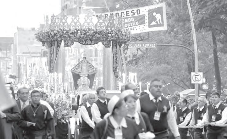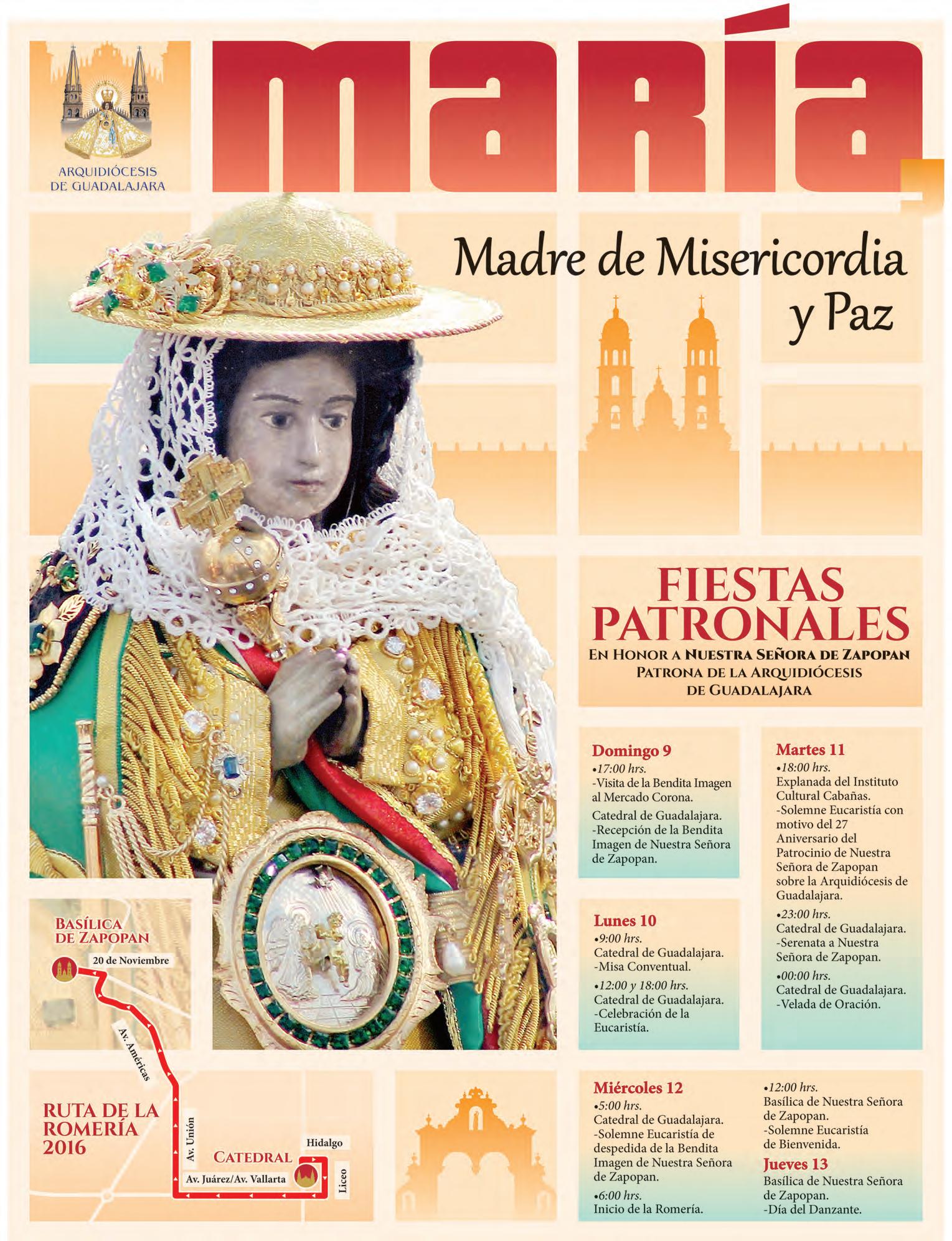En las calles de la Ciudad, desde la simplicidad de las colonias populares hasta recintos más hermosos; entre vecindades y rascacielos, María se siente Madre. Ha pasado fronteras, está en medio de creyentes de corazón y otros creyentes iniciales que se amotinan en el fervor de su Religión. Desde letrados hasta otros de sabiduría inicial, saben responder al “¡Viva la Virgen de Zapopan!” Sabemos de la hermosura de todo el folclore nacional que te adorna. Pero hay, por supuesto, en tu corazón de Madre, motivos más profundos para andar por las calles visitando Templos. Irrumpen ante Ti necesidades, visitas de gratitud, alabanzas de júbilo. Ya son cientos, miles, millones que por siglos han vivido esta tradición.
