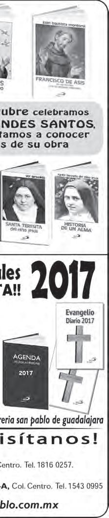 Semanario Arquidiocesano de Guadalajara • Órgano de Formación e Información Católica • Semanario Arquidiocesano de Guadalajara, fundado por el Sr. Cardenal Dn. Juan Sandoval Íñiguez, el 24 de enero de 1997 • Registrado ante la Comisión Calificadora de Publicaciones y Revistas Ilustradas —CCPRI— en Certificados de Licitud de Título y Contenido números 10296 y 7226 expediente 1/432“97”/13565 el 20 de enero de 1998 y en el Instituto Nacional de Derecho de Autor, bajo reserva al uso exclusivo del título 04-2011-070709061600-101 el 7 de julio de 2011 • Registro Postal Publicación Periódica PP14-0002-2000, autorización por SEPOMEX • No se devuelven originales. Los escritos firmados son responsabilidad del autor, no de la publicación ni del titular • Es una publicación editada por Creator Comunicación, S. de R.L. de C.V., con oficinas y redacción en Isla Flores N. 3344-2, Col. Jardines de San José, Guadalajara, Jal., México, C.P. 44950 A.P. 3-31. Los anuncios que se muestran en Semanario son responsabilidad, única y exclusivamente, del solicitante. No nos hacemos responsables de los servicios que se publicitan.