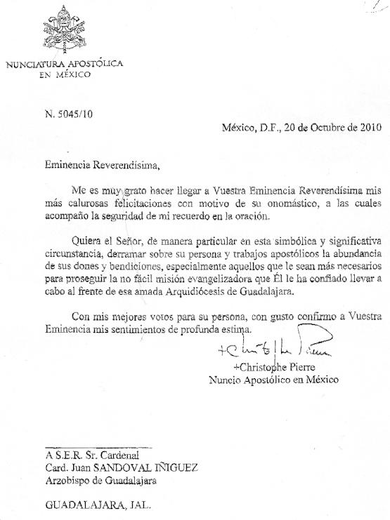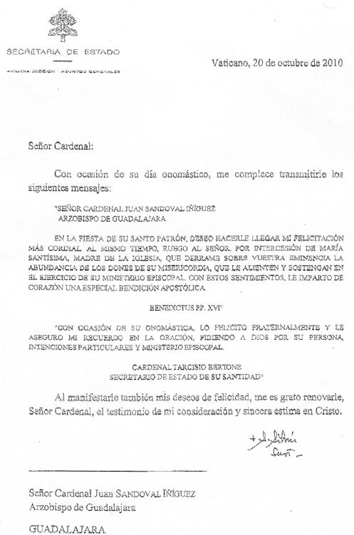 Entretanto, les pido y agradezco una oración por mi persona con motivo de mi onomástico, y es mi deseo hacerles saber que, de mi parte, siempre habrá un recuerdo de ustedes ante el Señor.