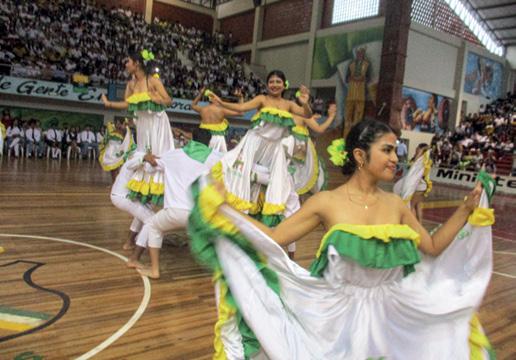 Estudiantes de los distritos: Cascales, Lago Agrio, Shushufindi, Cuyabeno y Putumayo, presentaron sus danzas de las nacio-