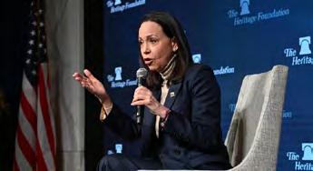 » La líder de la oposición venezolana y ganadora del Premio Nobel de la Paz, María Corina Machado, habla durante una conferencia de prensa en la sede de la Fundación Heritage en Washington, DC, el 16 de enero de 2026. | FotoAFP