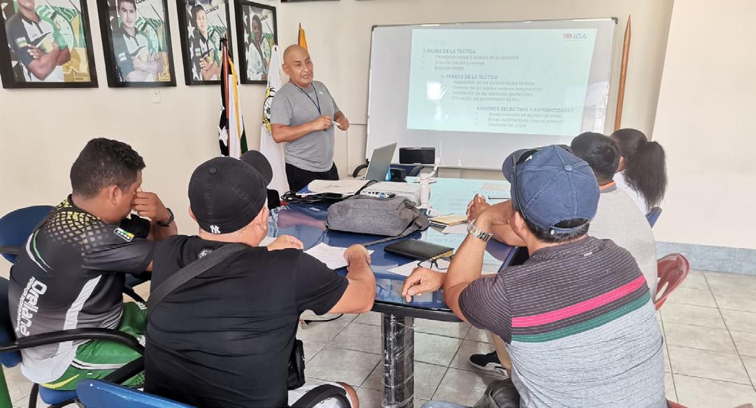 El taller se llevó a cabo el pa sado 21 de noviembre de 2022 en la sala de reuniones de FDPO, con el tema, “Fundamentos técni cos de boxeo”, donde participaron personal vinculado a esta disci plina, el taller estuvo dirigido por José Pucuna, entrenador 2 estre llas IBA (Internacional Boxing Asociación).