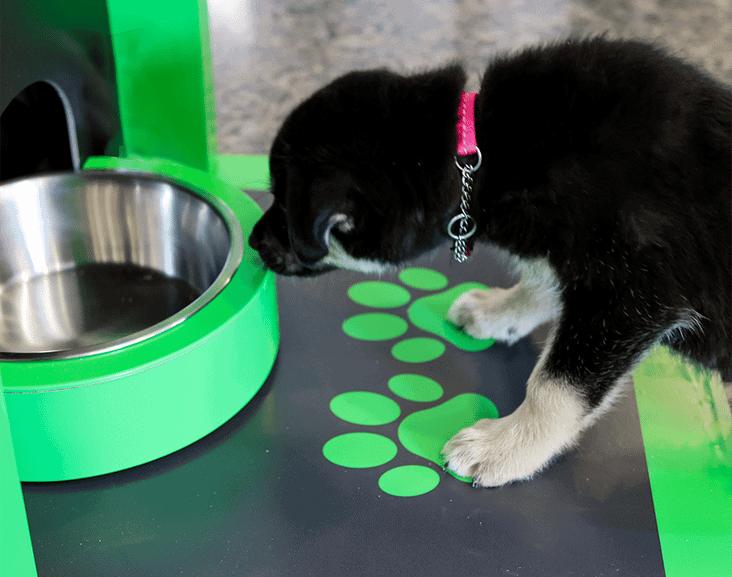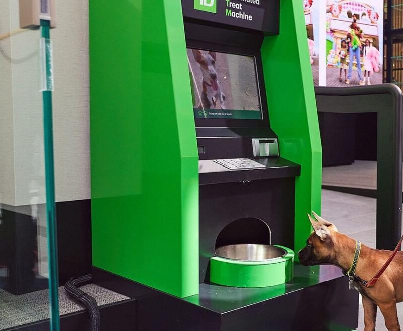 y coloca la pata sobre una alfombrilla con sensor de movimiento. En ese momento, la máquina libera un premio. El representante de TD Bank, Michael Snyder, explicó que la iniciativa busca que los clientes se sientan cómodos al visitar las sucursales con sus mascotas y que el banco sirva como un punto de encuentro para la comunidad.