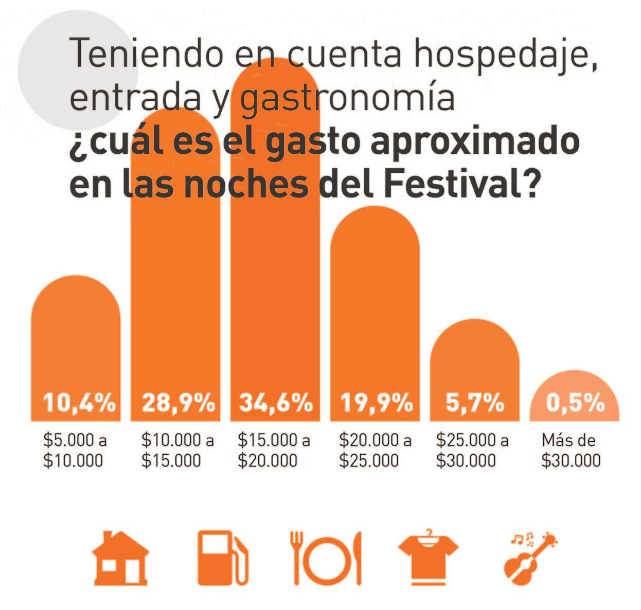 También se les preguntó -teniendo en cuenta hospedaje, entrada y gastronomía- ¿cuál fue el gasto aproximado durante las noches del Festival?