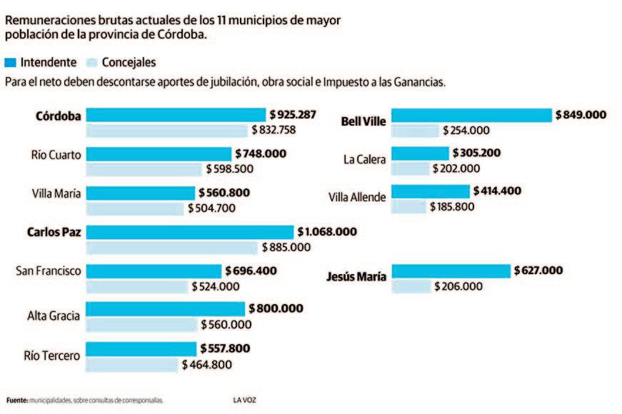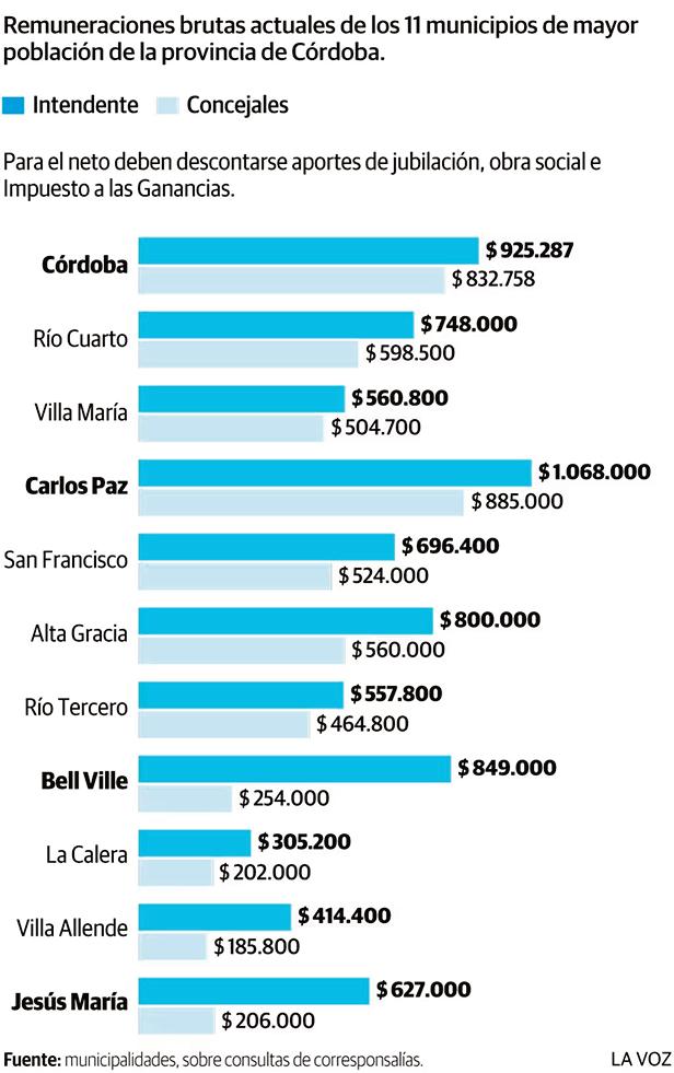 de importancia en el salario. Los concejales de Jesús María, paralelamente, aparecen novenos en el ranking, apenas por encima de La Calera, y Villa Allende.