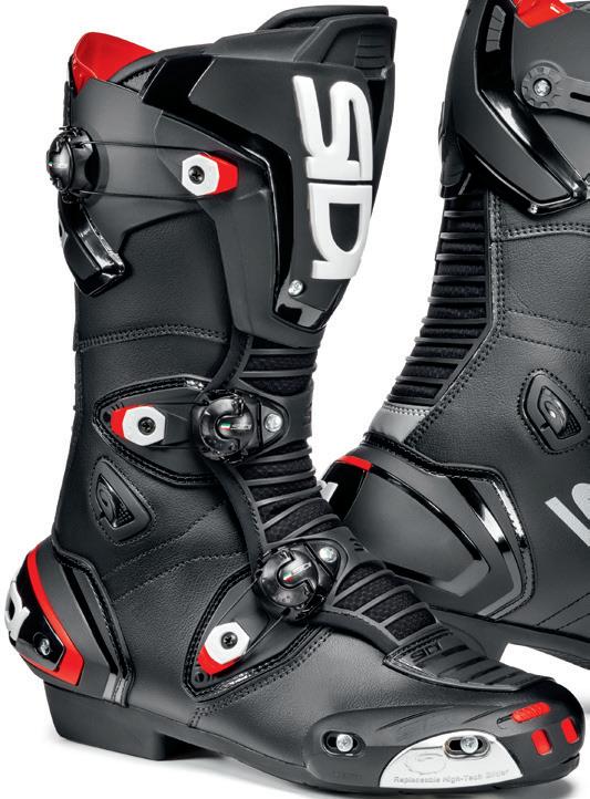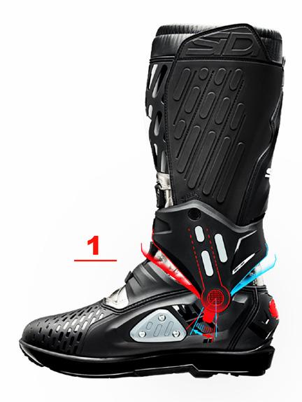 Pour améliorer la performance et la sécurité, la botte est équipée à l’arrière d’une structure identique au Système Vertebra qui équipe la gamme Road Racing la rendant ainsi plus souple.
