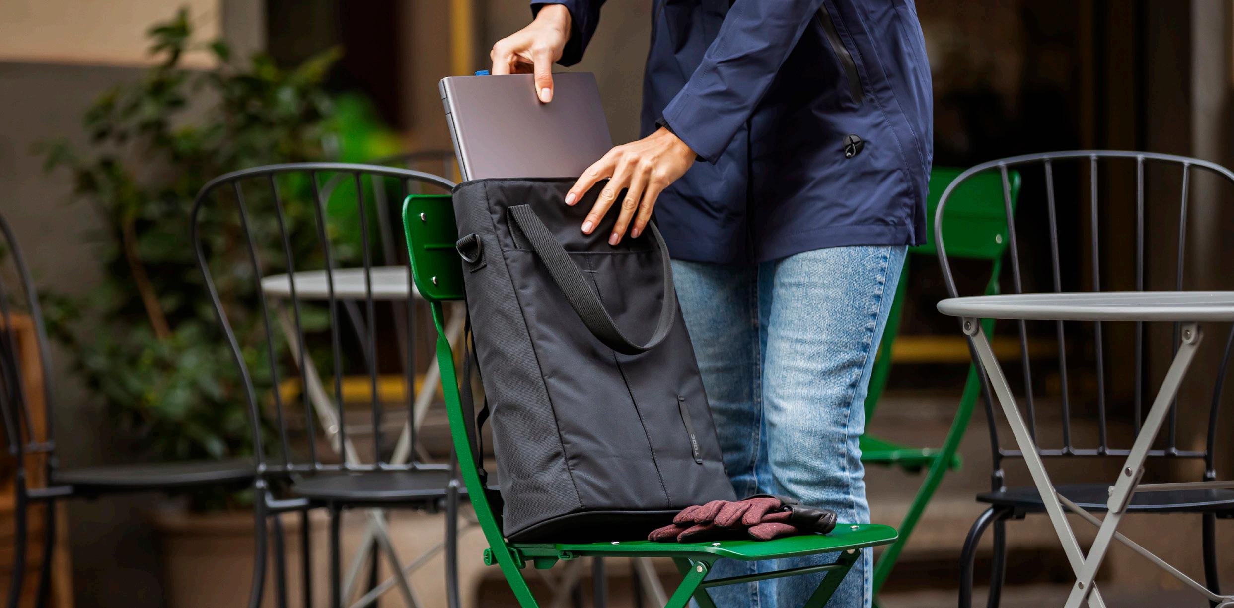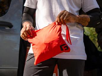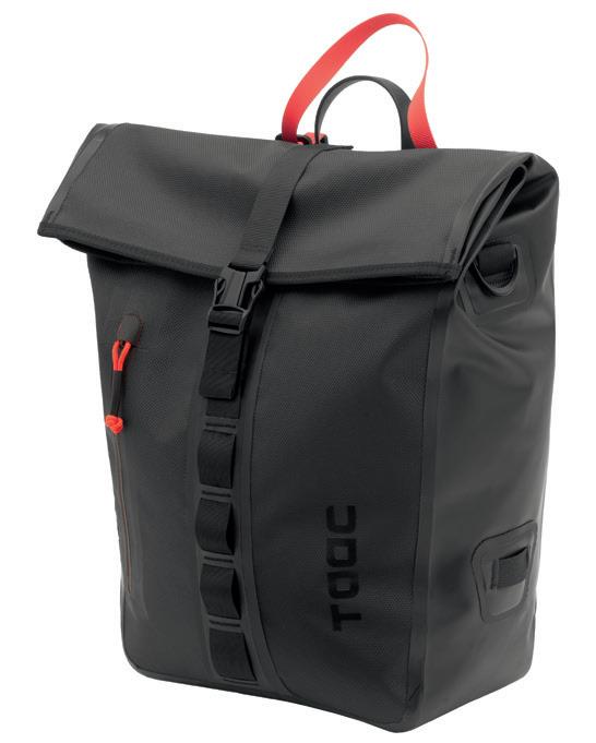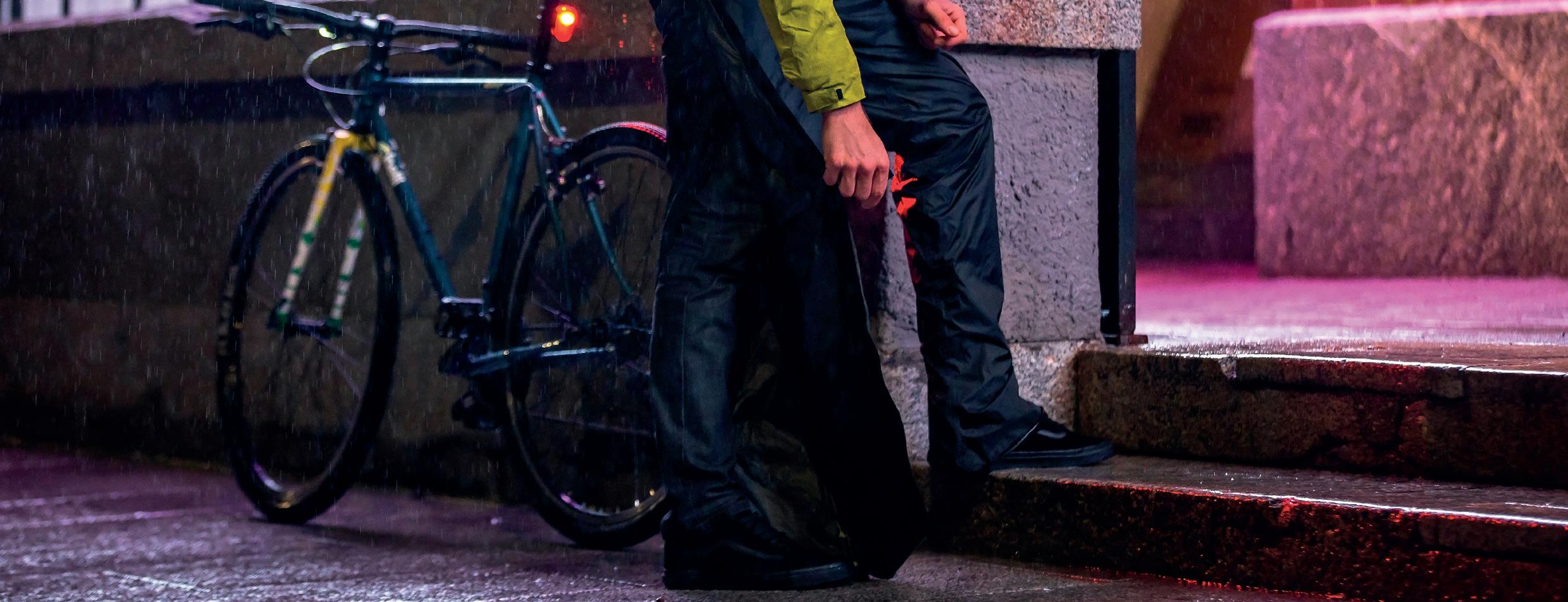 • Rangement en pochette pour un encombrement minimal, avec système d’accrochage au vélo/sac à dos