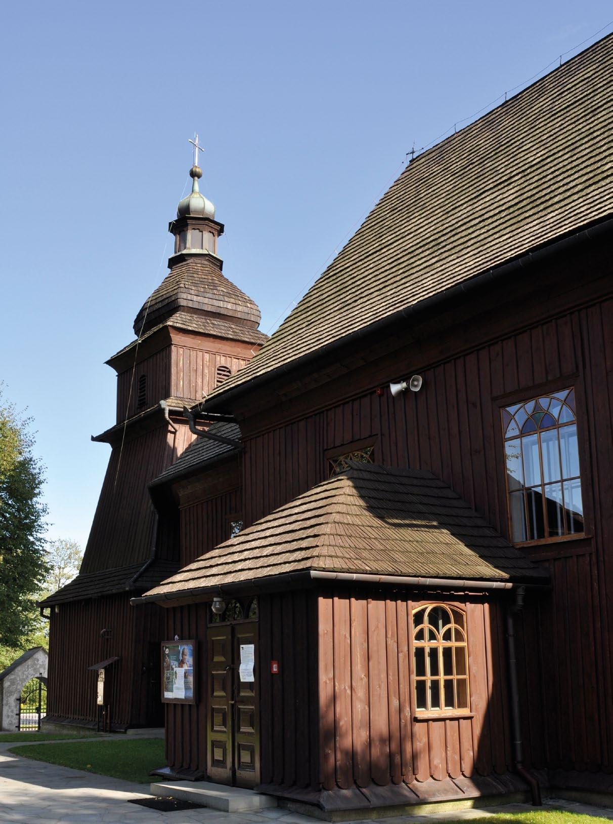 Szlak Architektury Drewnianej w województwie małopolskim ma długość 150 km. Obejmuje 237 zespołów architektonicznych, w wchodzą kościoły, cerkwie, kaplice, dzwonnice, spichlerze, wiejskie chałupy oraz rozległe szlacheckie dwory. Wszystkie obiekty są dobrze oznakowa ne. Do największych skarbów regionu należy Skansen w w gminie Jabłonka. Na jego obszarze znajdują się nie tylko domy, dzwonni ce, karczmy oraz dwór, lecz także liczne wiejskie warsztaty rzemieślnicze, na przykład olejarnia, tartak i folusz. Szczególnie godna uwagi jest chałupa w Jabłonce z roku 1843, w której przedstawione zostało dawne tkactwo orawskie. Warto zwrócić także uwagę na skansen w Sidzinie w powiecie suskim, gdzie w jednym ze spichlerzy znajduje się wystawa poświęcona okresowi II wojny światowej. Obejrzeć tam można m.in. mundury, broń, a fotografie z akcji partyzanckich. W ramach projektu „Muzyka zaklęta w drewnie” w zowane są na terenie zabytków znajdujących się na szlaku koncerty muzyki poważnej. Wstęp jest bezpłatny.