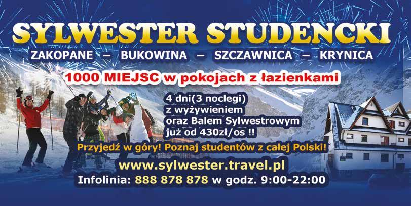granicą. Szczegółowy opis wszystkich ważniejszych organizacji studenckich oraz realizowanych przez nich projektów znajdziecie w jednym z najbliższych wydaniu SEMESTRu. Ci, którzy lubią aktywność fizyczną i sport, znajdą w czasie studiów mnóstwo okazji do ruchu. Oprócz – ogólnodostępnych dla wszystkich studentów – biegów do tramwaju i tym podobnych wyczynów amatorskich istnieje szereg innych możliwości, jak uczelniane sekcje sportowe czy kluby sportowe przy AZS (począwszy od piłki nożnej i koszykówki, poprzez bowling i paralotniarstwo, aż po tak egzotyczne dyscypliny jak korfball czy curling).