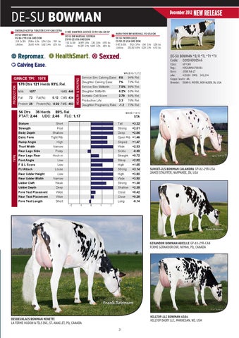 54 Dtrs 36 Herds 89% Rel. PTAT: 2.44 UDC: 2.46 FLC: 1.17 Stature Strength Dairy Form
