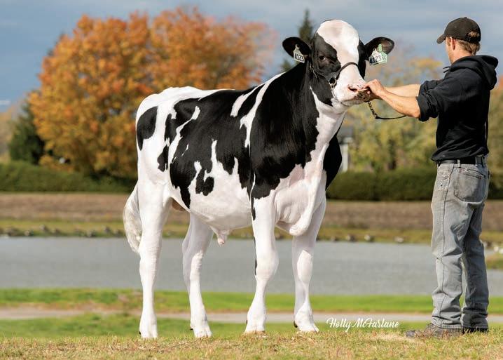 BOMAZ SOHOT FB LULU ACHV VEGAS VG-88-5YR-CAN ABS ACHIEVER STUNNING-M MONTROSS LULU VG-87-2YR-USA DOM BACON-HILL MONTROSS BUTLERVIEW UNO LIVA 2074 VG-85-3YR-USA GTPI 2830 TD TR TL TY TV 99%-I HH1F HH2F HH3F HH4F HH5C HH6F HCDF Reg. #: HOCANM13483482aAa: 423516 DMS: 345,135 Born: 09/30/2019 Kappa Casein: ABBeta Casein: A2A2 PRODUCTION 22-21 / G-BCDC leR %28 srtD G sdreH G Milk lbs 144 Fat lbs 112 Fat % +0.38 Protein lbs 30 Protein % +0.09 NM$ 829 CM$ 852 FM$ 696 GM$ 762 DWP$ 972 HEALTH & REPRODUCTION Immunity 115 Productive Life 4.2 Calf Immunity 112 Somatic Cell Score 2.60 Sire Calving Ease 1.4% 89% Rel Daughter Pregnancy Rate -0.6 Daughter Calving Ease 1.6% 70% Rel Livability 3.1 Sire Stillbirth 5.3% Feed Efficiency 207 Daughter Stillbirth 4.5% Feed Saved -165 Fertility Index -0.2 CONFORMATION G Herds G Dtrs 79% Rel HAUSA-G / 12-22 PTAT 0.74 Body Composite 0.04 Udder Composite 1.12 Dairy Composite -0.27 Feet & Legs Composite 0.33 Stature Tall +0.08 Strength Strong +0.05 Body Depth Deep +0.05 Dairy Form Open Rib +0.11 Rump Angle High -0.86 Rump Width Wide +0.22 Rear Legs Side View Posty -1.25 Rear Legs Rear View Hock-in -0.04 Foot Angle Steep +0.75 F & L Score High +0.44 Fore Attachment Strong +1.50 Rear Udder Height High +0.45 Rear Udder Width Wide +0.96 Udder Cleft Strong +1.81 Udder Depth Shallow +1.26 Fore Teat Placement Close +1.25 Teat Length Short -0.62 Rear Teat Placement Close +1.65 -2-1 01 2 Radetzky PROGENESIS RADETZKY AB CODE 121682 CHALLENGER x LEGENDARY x DELTA SANDY-VALLEY CHALLENGER OCD LEGENDARY RAE VG-88-5YR-CAN WELCOME LEGENDARY 2870 OCD DELTA RAE 4278 VG-85-2YR-USA MR MOGUL DELTA 1427 EDG RUBY UNO RAE EX-91-4YR-USA DOM GTPI 2835 TD TR TL TY TV 99%-I HH1F HH2F HH3F HH4F HH5C HH6F HCDF Reg. #: HOCANM13227668aAa: 432516 DMS: 561,456 Born: 10/09/2018 Kappa Casein: ABBeta Casein: A2A2 PRODUCTION 22-21 / G-BCDC leR %28 srtD G sdreH G Milk lbs -671 Fat lbs 66 Fat % +0.34 Protein lbs 21 Protein % +0.15 NM$ 698 CM$ 728 FM$ 495 GM$ 735 DWP$ 868 HEALTH & REPRODUCTION Immunity 103 Productive Life 4.8 Calf Immunity 97 Somatic Cell Score 2.67 Sire Calving Ease 2.6% 72% Rel Daughter Pregnancy Rate 3.5 Daughter Calving Ease 2.4% 70% Rel Livability 3.0 Sire Stillbirth 5.7% Feed Efficiency 128 Daughter Stillbirth 5.0% Feed Saved -91 Fertility Index 3.3 CONFORMATION G Herds G Dtrs 80% Rel HAUSA-G / 12-22 PTAT 1.70 Body Composite 0.36 Udder Composite 2.32 Dairy Composite -0.66 Feet & Legs Composite 0.89 Stature Tall +0.24 Strength Strong +0.16 Body Depth Shallow -0.22 Dairy Form Tight Rib -0.41 Rump Angle High -1.09 Rump Width Wide +0.08 Rear Legs Side View Posty -0.19 Rear Legs Rear View Straight +0.44 Foot Angle Steep +1.47 F & L Score High +0.96 Fore Attachment Strong +3.16 Rear Udder Height High +2.75 Rear Udder Width Wide +1.88 Udder Cleft Strong +0.99 Udder Depth Shallow +2.23 Fore Teat Placement Close +1.25 Teat Length Short -1.15 Rear Teat Placement Close +1.33 -2-1 01 2