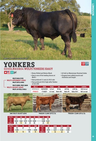 • Homo Polled and Hetero Black • Dam is one of the leading donors at Wulf’s • Dam produced 11 sons in 2012 sale • Dam produced 2012 high seller Yankee at $42,000