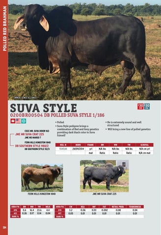 • Polled • Suva Style pedigree brings a combination of Red and Grey genetics providing dark black color to Suva himself