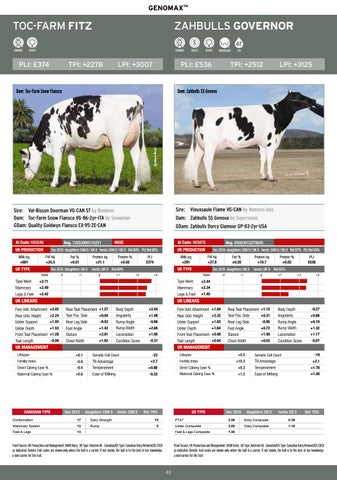 UK Type: Holstein UK. Canadian/US Type: Canadian Soft Dairy Network/US CDCB 9 as indicated. Genetic trait codes are shown only where the bull is a carrier. If not shown, the bull is to the best of our knowledge, Median Suspensory Strong 5 a non-carrier for the trait. Fore Attachment Strong 13