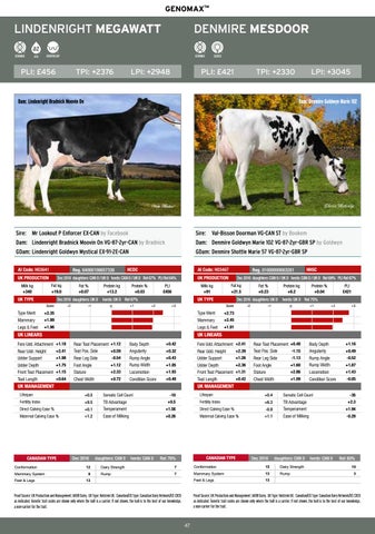 UK Type: Holstein UK. Canadian/US Type: Canadian Soft Dairy Network/US CDCB 11 as indicated. Genetic trait codes are shown only where the bull is a carrier. If not shown, the bull is to the best of our knowledge, Median Suspensory Strong 4 a non-carrier for the trait. Fore Attachment Strong 13 7C