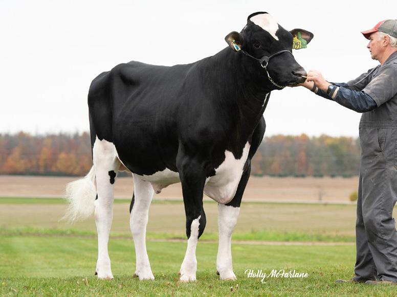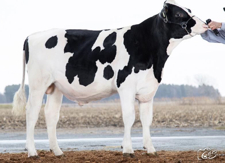 47 CROTEAU LESPERRON UNIX • PREMIER SIRE AT MULTIPLE NATIONAL SHOWS • QUALITY SILKY UDDERS • STYLISH DAIRY TYPE THAT CAN CREATE THE SPECIAL ONES Daughter: Riverdane Unix Advantageous VG89 Daughter: Jacobs Unix Brandina Daughter: Mosnang Unix Lipstick Proof Source: DECEMBER 2022 UK Production and Health and Reproduction: AHDB Dairy. *Immunity Indices sourced Semex Alliance UK Type: Holstein UK. Canadian/US PTAT: Canadian Dairy Network/US CDCB as indicated. Genetic trait codes are shown whether the bull is a carrier or not. NUMERO UNO x DOMAIN x GOLDWYN PLI: £308SCI: £145 TPI: 2322LPI: 2843 Sire: AMIGHETTI NUMERO UNO by MAN-O-MAN Dam: REGAN-ALH DOMAIN DAYA EX-93-3E-CAN 16* by DOMAIN GDam: REGAN-ALH G DESTINI VG-88-5YR-USA GMD DOM 7* AI Code: HO3787 Reg: 64107567492 HH1F HH2F HH3F HH4F HH5F HH6F HCDF TD TR TL CNF TY TV Kappa Casein: BE Beta Casein: A1A1 UK PRODUCTION Dtrs/Hrds CAN 12093/2729UK 3426/597 Milk 627 kg 99% Rel Fat 17.0 kg -0.09% Protein 14.3 kg -0.07% PLI £308 99% Rel UK HEALTH & REPRODUCTION Immunity 90 Calf Immunity 97 Somatic Cell Count -4 Mastitis Resistance 1 Lifespan 49 Fertility Index 7.8 Direct Calving Ease % -0.3 Maternal Calving Ease % 0.3 TB Advantage 1.9 Temperament 0.43 Ease of Milking 0.72 Enviro Cow 1.1 CANADIAN CONFORMATION Dtrs/Hrds in UK Type (see right) Rel 99% Conformation 9 Mammary System 9 Feet & Legs 7 Dairy Strength 0 Rump 6 UK TYPE Dtrs/Hrds CAN 10288/2475 UK 1796/339 99% Rel -2-10+1+2 Type Merit +0.83 Mammary +1.82 Legs & Feet +0.51 Stature +1.22 Chest Width-1.39 Body Depth+0.10 Angularity+0.96 Rump Angle+0.65 Rump Width+1.32 Rear Leg Side+1.60 Foot Angle-1.50 Fore Udd. Att.+1.54 Rear Udd. Ht.+2.28 Udder Support+2.21 Udder Depth+1.07 Front Teat Pl.+2.08 Teat Length-1.09 Rear Teat Pl.+2.36 Teat Pos. Side+0.79 Locomotion+0.80 Condition Score-1.47