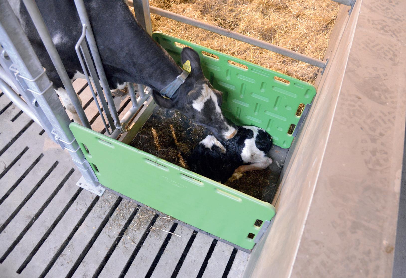 dälle ja asettamalla syöntiin houkuttavaa rehua reiluin määrin tarjolle. Hollantilaisen CowSignals-konseptin lanseeraama CuddleBoxsysteemi on hyvä tapa homman tekemiseen. Ruokintapöydällä olevaan laatikkoon nostettu vastasyntynyt vasikka pysyy hyvin aloillaan, jolloin emäkin rentoutuu syömään. Ja jokaisella suupalalla se saa sisäänsä energiaa, valkuaista, kalsiumia, kuitua, tärkkelystä ja magnesiumia, jotka varmistavat