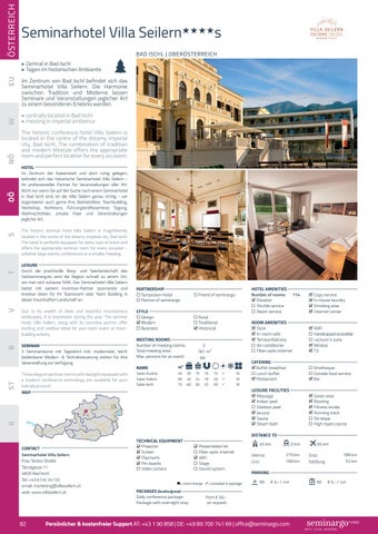CONTACT Seminarhotel Villa Seilern Frau Teresa Streibl Tänzlgasse 11 4820 Bad Ischl Tel: +43 6132 24132 email: marketing@villaseilern.at web: www.villaseilern.at
