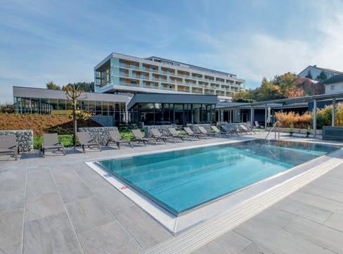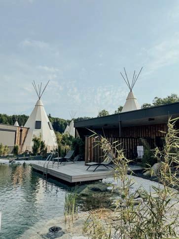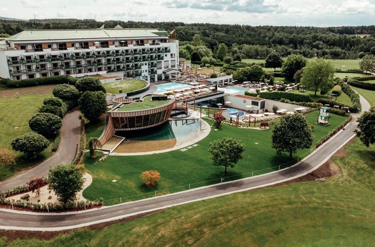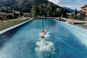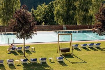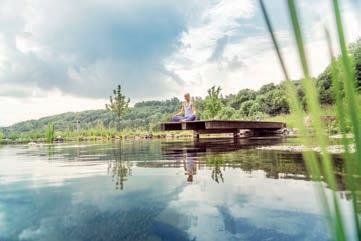 LEISURE Der 20.000 m² große Garten mit Naturbadeteich ist zweifellos das Herz unseres RelaxResorts. Der In- und Outdoorpool, aber auch die Saunen und der erstklassige Fitnessraum bieten Bewegung und Entspannung zugleich. Weiters: Tennisplätze, Fahrräder, Nordic Walking und Golf.