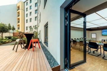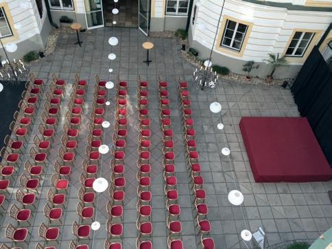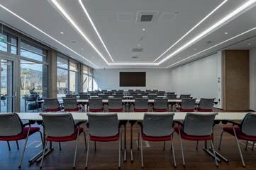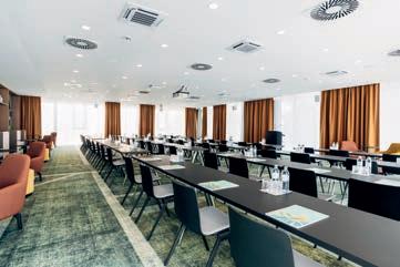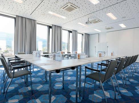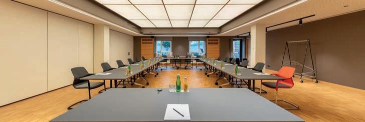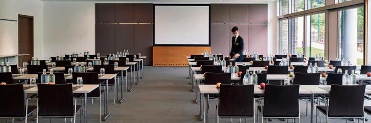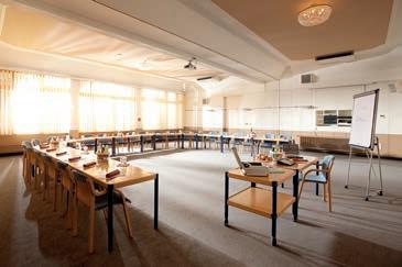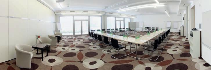 9 Seminarräume mit Klimaanlage und angeschlossenen Seminarterrassen; flexible Trennwände und professionelle Seminartechnik. Professional seminar areas with air conditioner, direct exit and flexible partitions.