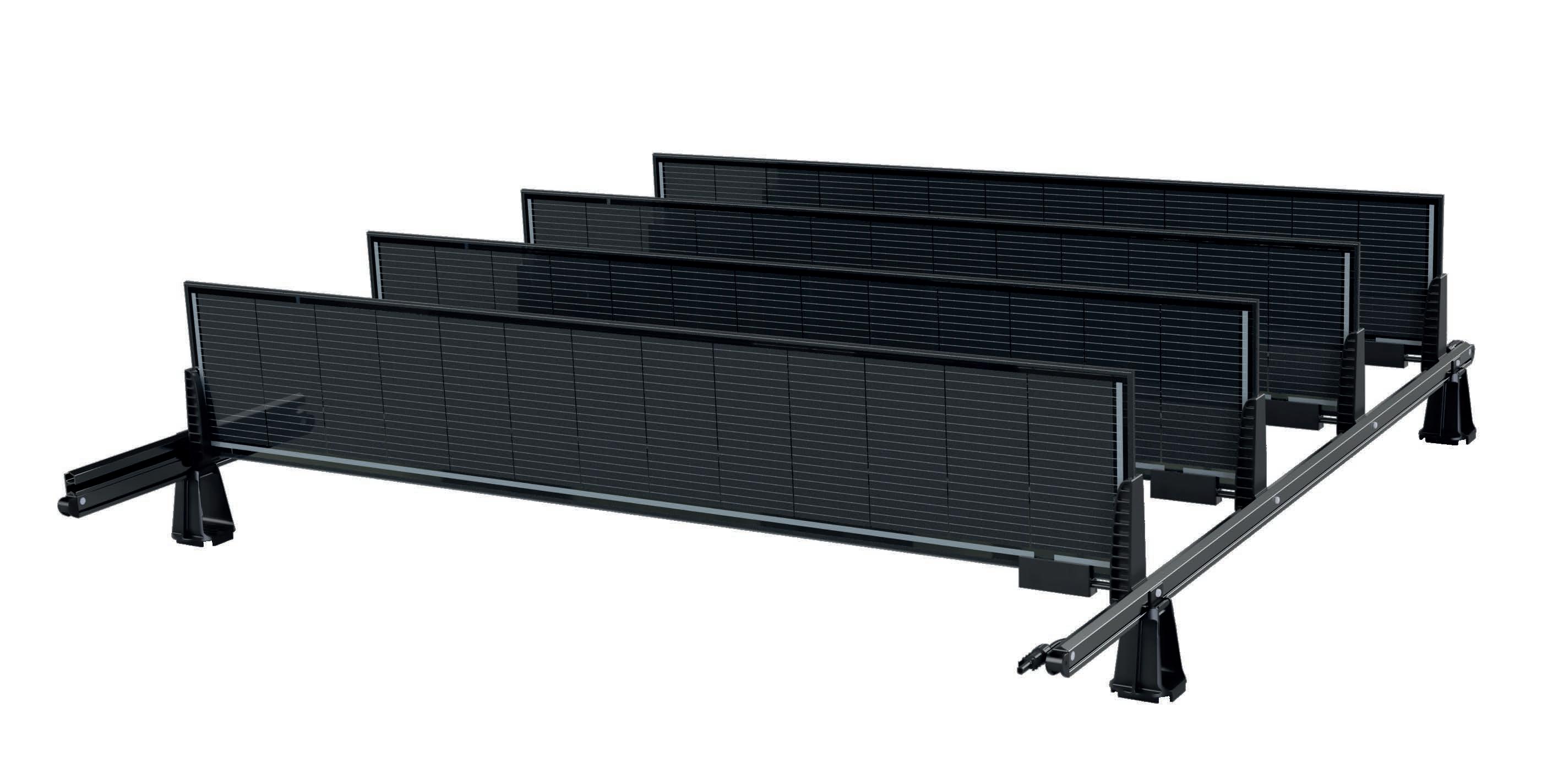 Designed for flat (green) roofs, the Over Easy Solar bifacial VPV solution realises energy production in a revolutionary way. The lightweight units can be easily installed on the roof while keeping the roof readily accessible for inspection, maintenance and repairs.