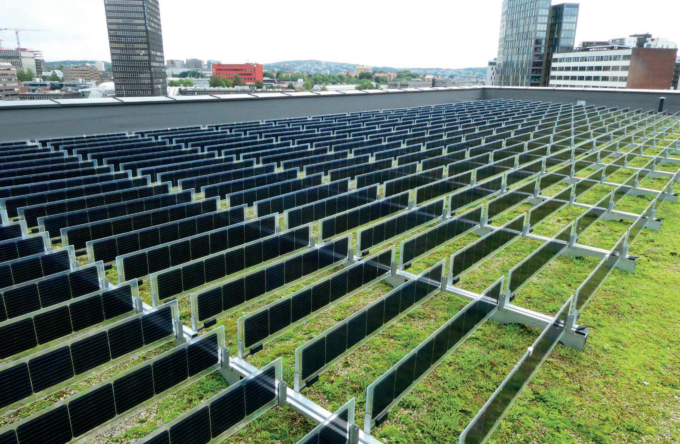 The lower temperature caused by greenery on the roof can lead to as much as 10% higher energy yield.