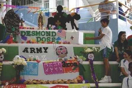 Durante la actividad del altar yo ayudé a decorar y organizar el altar que escogimos, donde conmemoramos la vida de “Desmond Doss”
