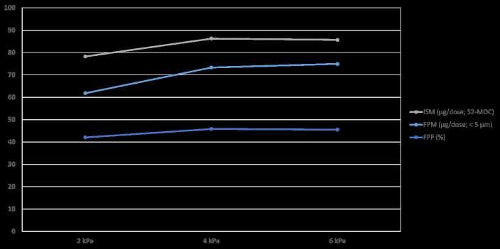 Figure 4: Fine Particle Delivery of Budesonide 200 µg Powder for Inhalation at 2, 4 and 6 kPa.