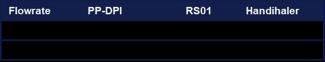 Table 1: Comparison of FPF at different Flowrates for Presspart (PP) Device, RS01 equivalent and Handihaler for the Rifampicin particle-engineered formulation.