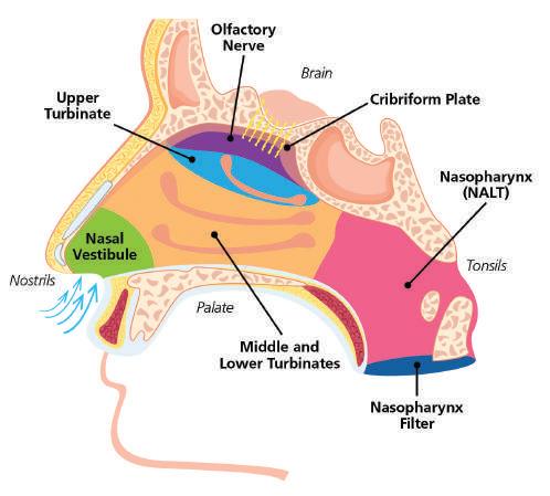 Another promising route being explored nowadays is the nose-to-brain pathway, presenting opportunities to offer efficient drug delivery particularly for central nervous system (CNS) therapies. Direct brain delivery would mean lower doses therefore less toxicity and less off-target effects as the medications mitigate the first-pass metabolism. However, anatomically, our brain is protected by the blood brain barrier (BBB) which prevents >95% of molecules from entering the CNS from the bloodstream. Noseto-brain delivery poses a real challenge in targeting the olfactory region in the nose,