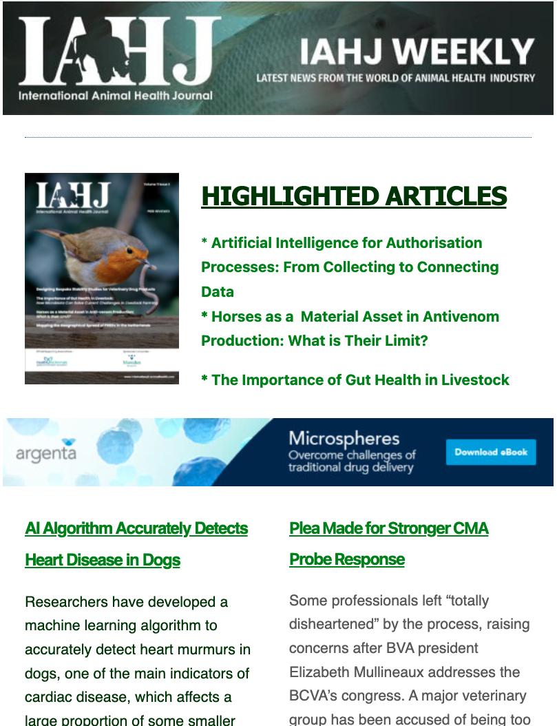 IAHJ – E-Newsletter is published weekly to over 16,210 highly engaged animal health professionals. Each edition features a premium collection of news, blogs, advertising banners, events, webcasts and more.