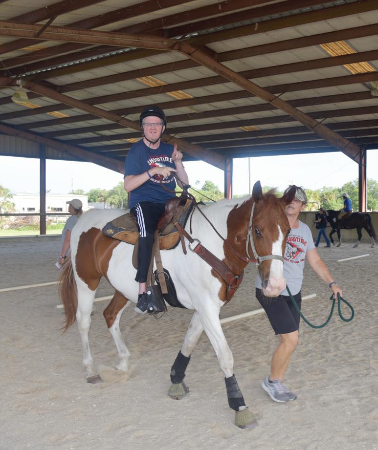 More than 50% of the roster are children on the autism spectrum. Riding horses contradicts almost every instinct they have and requires them to pay close attention to their horse, side walker and leader. The riders build self esteem and independence by playing games and learning how to ride and control their horses. Some riders who will not hug their parents hug their horses and the volunteers helping them.