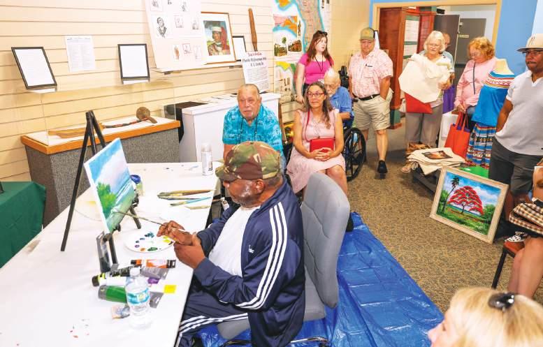Highwaymen artist R.L. Lewis attracts a crowd to watch him paint during Senior Life’s Morning at the Museum Senior Expo at the Brevard Museum of History in June 2025.