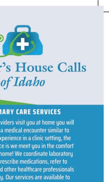Additional copies of this Directory are available FREE at most of the gathering places for seniors. Give us a call at 208.922.6317 and we will direct you to the location nearest you or go to www. SeniorsBlueBook.com and click on the “Find a Book” link to locate your closest distribution points.