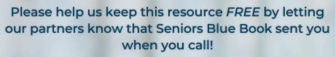 At Seniors Blue Book, we pride ourselves on compiling a complete book of resources for seniors, their caregivers, family members, and our respected senior industry professionals. Our goal is to educate and provide helpful resources to the community and that includes getting this guide into the hands of all who need it! As always, we ask that you please tell our supporting partners that you heard of them from the Seniors Blue Book, so that we can continue to bring you this valuable resource guide FOR FREE!