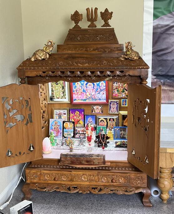 Hindu Altar. Hindu families traditionally build an altar that contains each god and goddess they puja (or worship). During a celebration, they would then build a second temporary altar to that specific god or goddess.