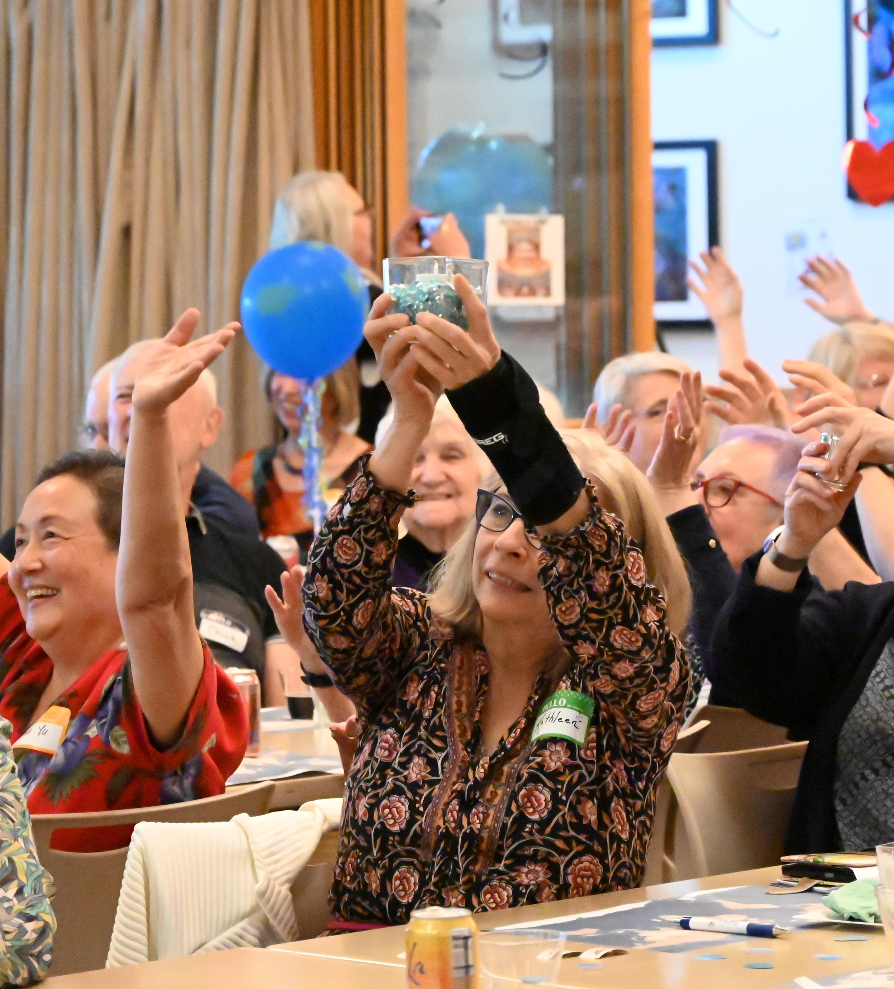 Volunteers sing along to We Are the World during our Volunteer Appreciation dinner in April.