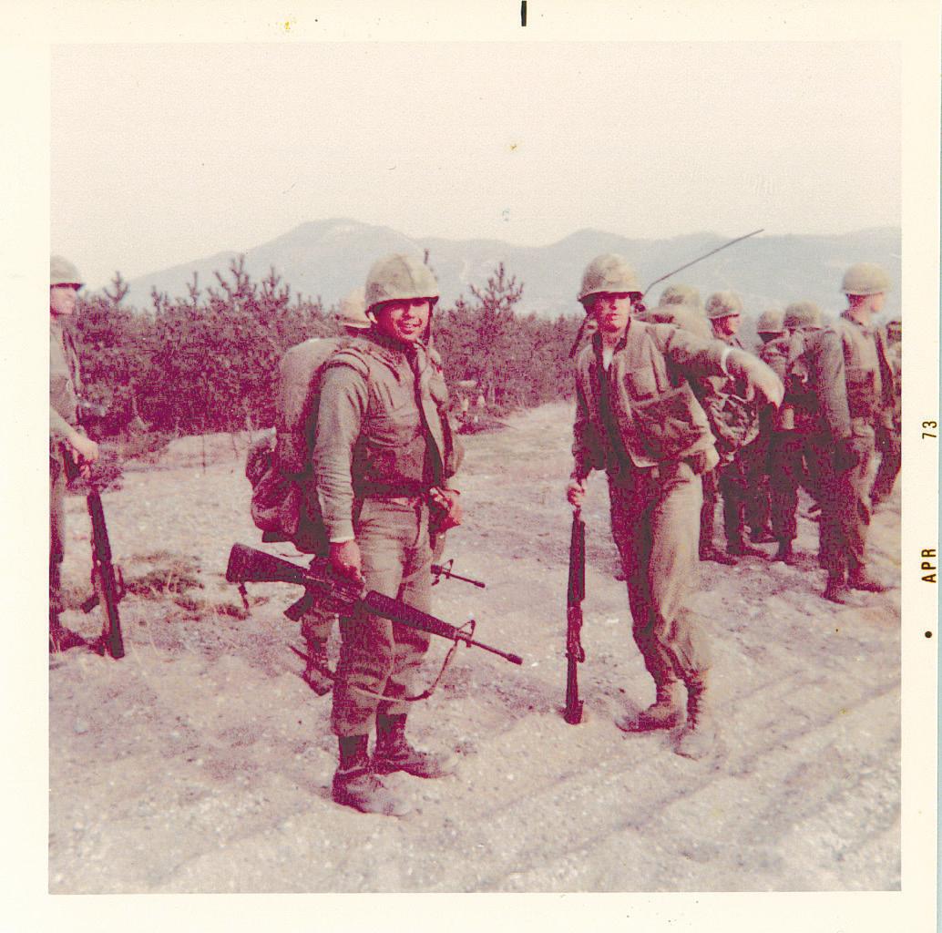 I was in for two years, including stateside training. After Okinawa, I went to Camp Fuji—I climbed the mountain! After our tour, they gave us extended leave and took us to see the sights of Japan, including Tokyo. I remember seeing Pokemon, and that was in the 70s! It was so different and interesting over there—sushi, martial arts, and all that. There was also a Japanese military base next to us at