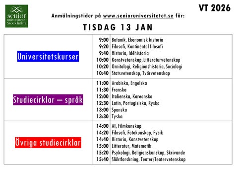 Tider för anmälan VT26 by senioruniversitetet - Issuu