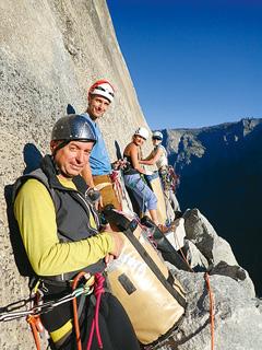 Links: Lise unterwegs mit dem französischen Frauenkader; Mitte und rechts: Familienausflug à la Billon – Lise und ihr Bruder schenkten ihrem Vater eine Begehung der Route „Freerider“ am El Capitan im Yosemite; unten: vereister Kamin am Cerro Torre.
