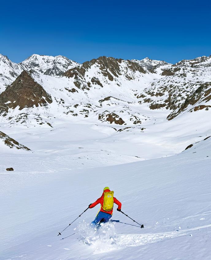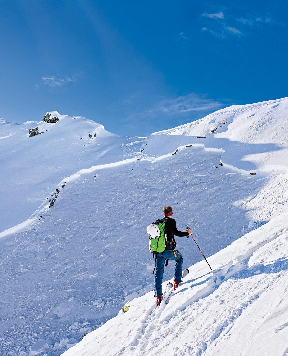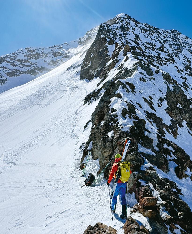 „Du hast irre Möglichkeiten hier“, schwärmt Ludwig Gorfer. „Früher waren die Skitourengruppen mit Bergführer im März und April oft eine Woche im Glieshof.“ Der Bergführer aus Naturns im Vinschgau kennt und schätzt die Skitourenauswahl im Matscher Tal mit zahlreichen Dreitausendern, auch wenn es hier nichts unter tausend Höhenmeter gibt. „Für den Hochwinter geeignet sind nur wenige Ziele, doch im Frühjahr findest du mehr als genug lohnende Touren“, erzählt er. „Aber die meisten sind anspruchsvoll, abenteuerlich und eher einsam.“