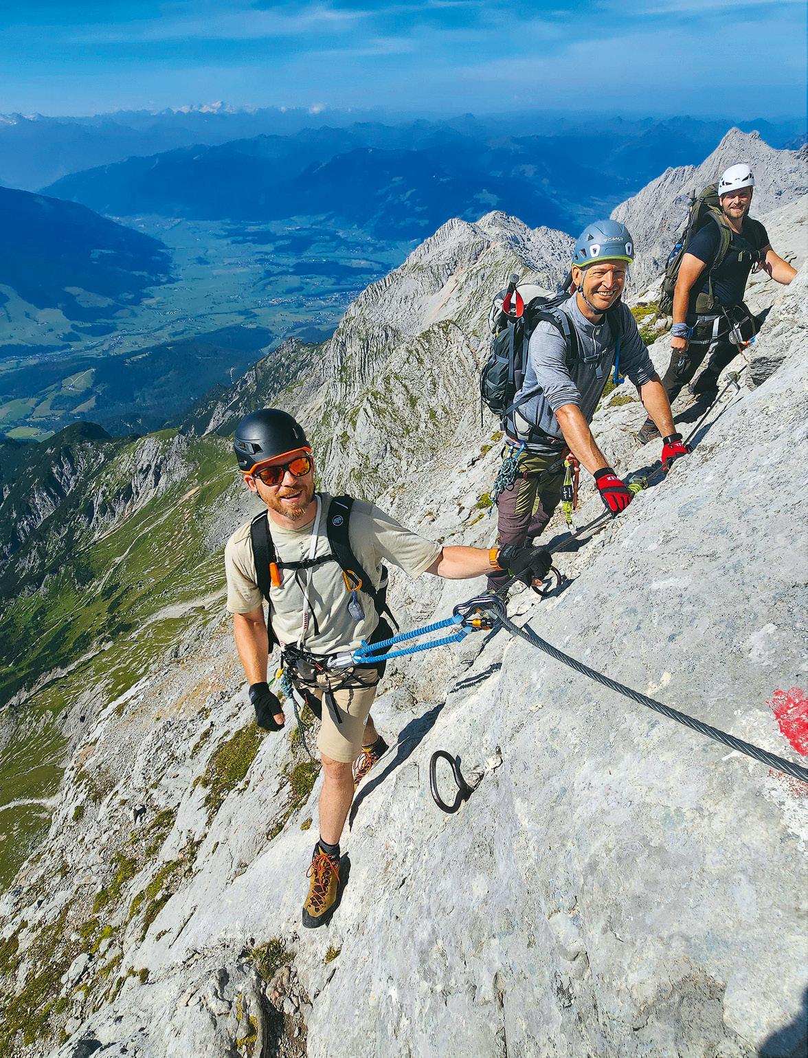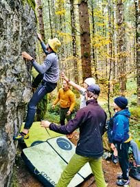 ZUSATZQUALIFIKATION ERLEBNISPÄDAGOGIK –„Berge sind stille Meister und machen schweigsame Schüler.“ Dieses Zitat von Johann Wolfgang von Goethe gilt in der heutigen schnelllebigen Zeit mehr denn je; gleichzeitig erfordern gesellschaftliche Entwicklungen Menschen mit Klarheit in Wort und Haltung. Alpine Erlebnispädagogik kann diese tief im Menschen angelegten Mechanismen stärken und vergegenwärtigen. Die Zusatzqualifikation, eine berufsbegleitende Ausbildung für pädagogische Fachkräfte mit Handlungsfeldern wie Bergwandern und Klettern, gibt es seit über 25 Jahren. Sie war eine der ersten erlebnispädagogischen Ausbildungsformen im deutschsprachigen Raum. „Die ZQ“ ist die einzige Ausbildung auf diesem Markt, die ihren Teilnehmer*innen – dank der Zusammenarbeit mit den führenden Fachverbänden –einen fachsportlich zertifizierten Abschluss anbieten kann. Viele der Ausbildungskurse finden in der Jugendbildungsstätte der JDAV in Bad Hindelang statt. Nach dem Einführungskurs stellen sich die Teilnehmer*innen fachsportlich und erlebnispädagogisch orientierten Praxisfragen, in denen neben der notwendigen Methodenkompetenz die Fähigkeit vermittelt wird, Gruppen im jeweiligen Handlungsfeld sicher und zielorientiert zu begleiten. Ben Miroux Nächster Ausbildungsstart ist im März 2026. Infos und Anmeldung telefonisch unter 08324/93 01 15 oder unter zq-ep.de.